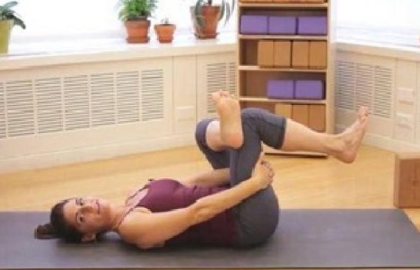 ให้เริ่มจากนอนราบลงไปกับพื้น แล้วยกขาทั้งสองข้างขึ้นมา จากนั้นงอเข่าเข้าหาตัว