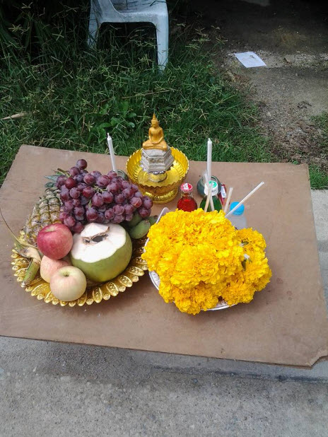 ให้มารับเครื่องสังเวยเครื่องสักการะที่ลูกได้จัดถวายให้แล้วในวันนี้เนื่องจากว่าลูกเคยบนบานศาล